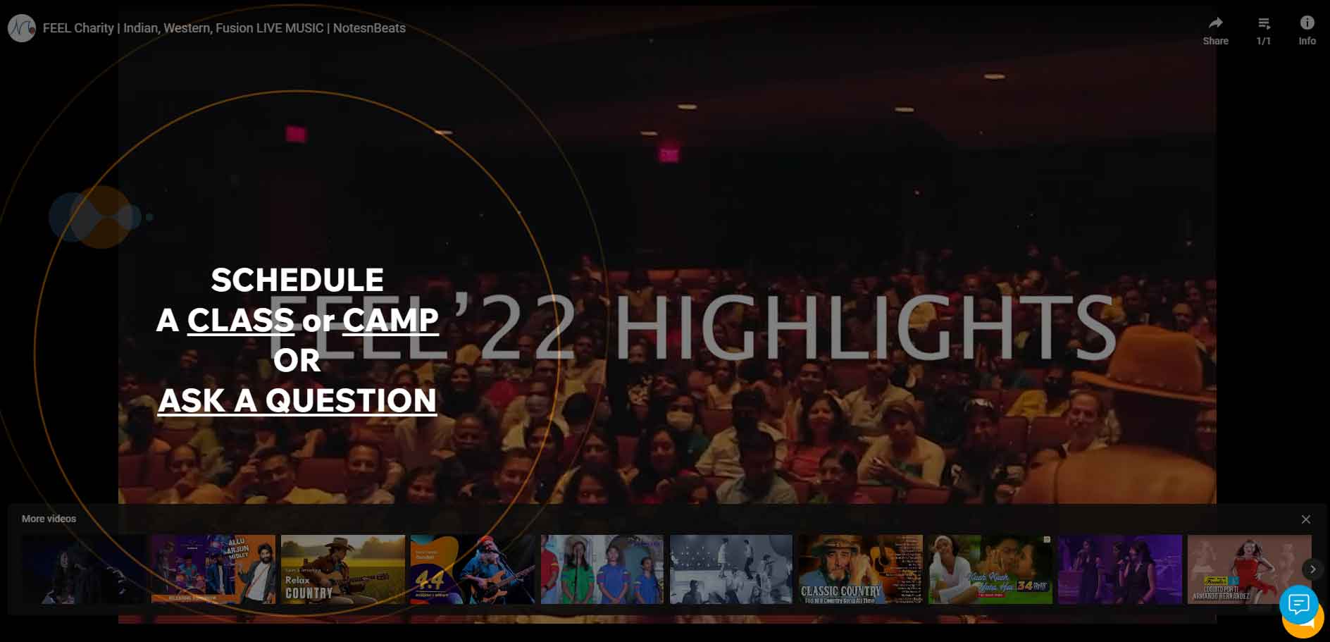 I love the background video that Notes n’ Beats uses in the header section of the homepage. It shows a dynamic musical production with various musicians, dancers, and singers.